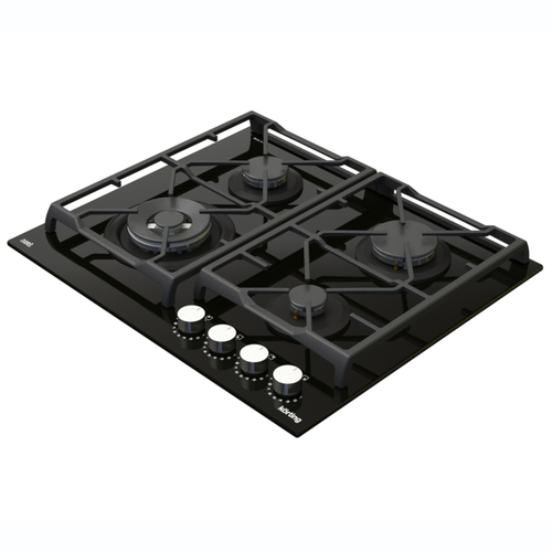 Описаниеповерхность газовая независимая, 60 см, газ на стекле, 4 конфорки, решетки чугунные, черный