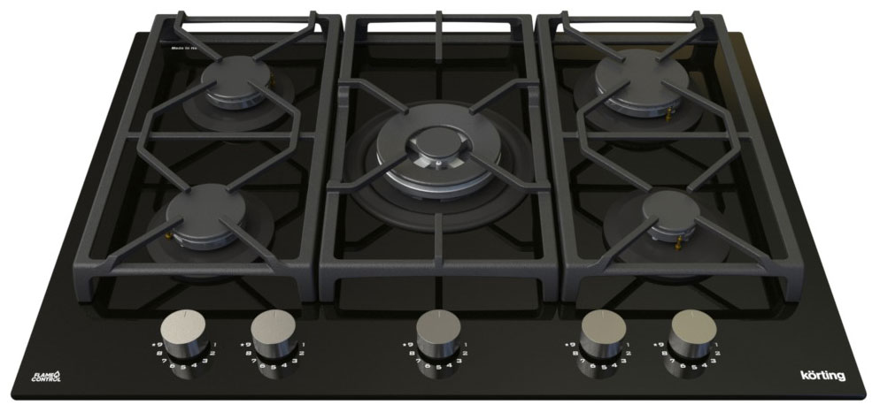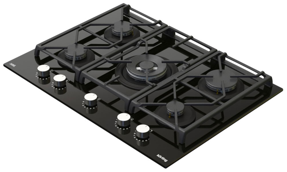 Описаниеповерхность газовая независимая, 70 см, газ на стекле, 5 конфорок, решетки чугунные, черный
