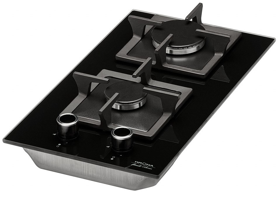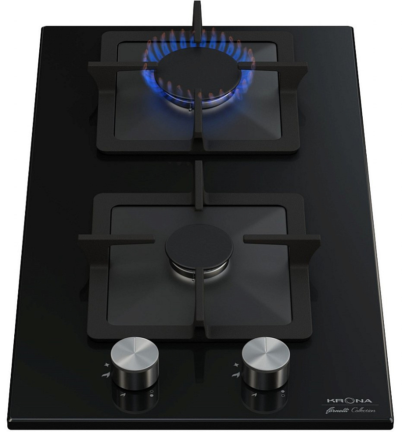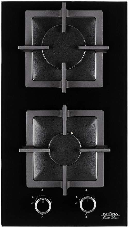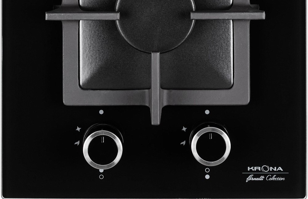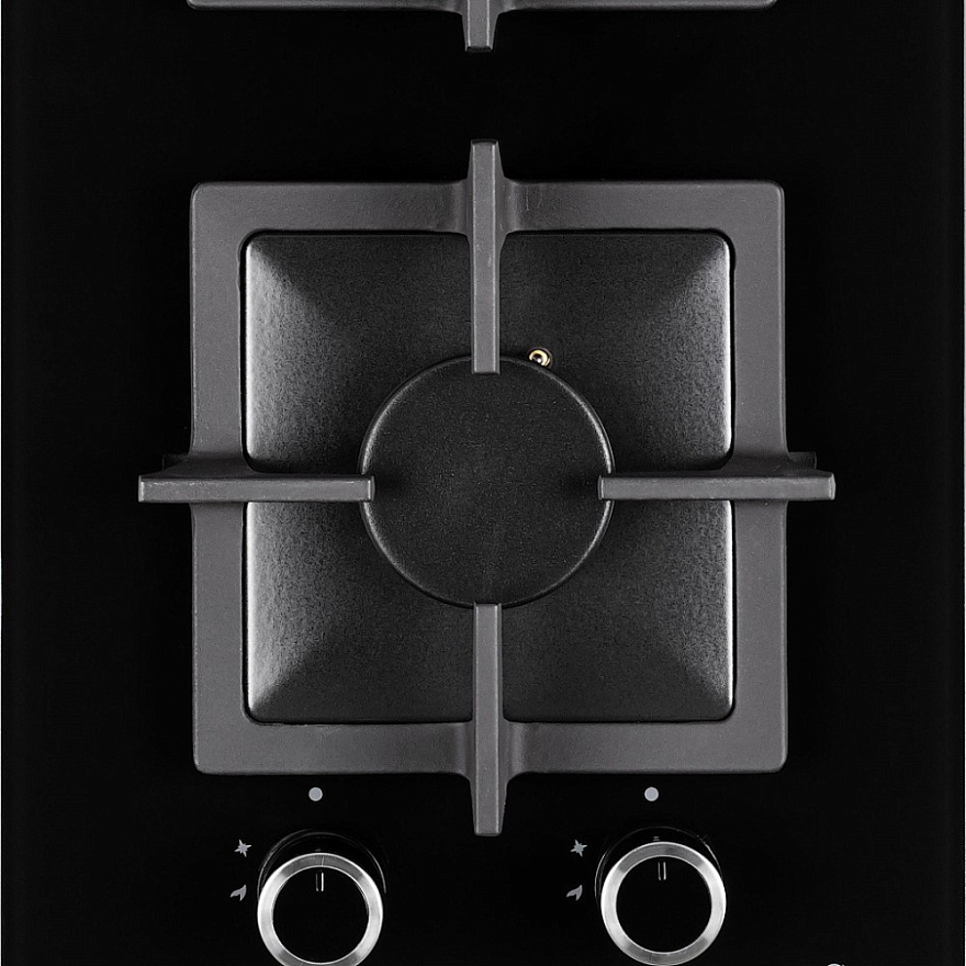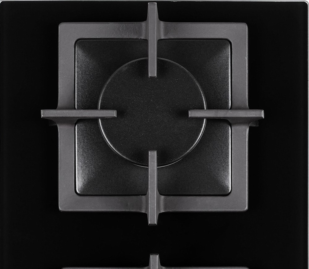 Описаниеповерхность газовая независимая, 30 см, газ на стекле, 2 конфорки, решетки чугунные, черный