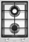 Описаниеповерхность газовая независимая, 36 см, газ на металле, 2 конфорки, решетки чугунные, нержавеющая сталь