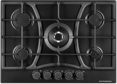 Описаниеповерхность газовая независимая, 70 см, газ на эмали, 5 конфорок, решетки чугунные, антрацит