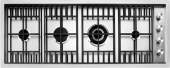Описаниеповерхность газовая независимая, 115 см, газ на металле, 4 конфорки, решетки чугунные, нержавеющая сталь