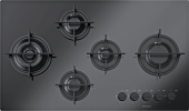 Описаниеповерхность газовая независимая, 86 см, газ на стекле, 5 конфорок, решетки чугунные, черный