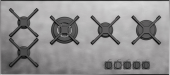 Описаниеповерхность газовая независимая, 100 см, газ на металле, 5 конфорок, решетки чугунные, нержавеющая сталь