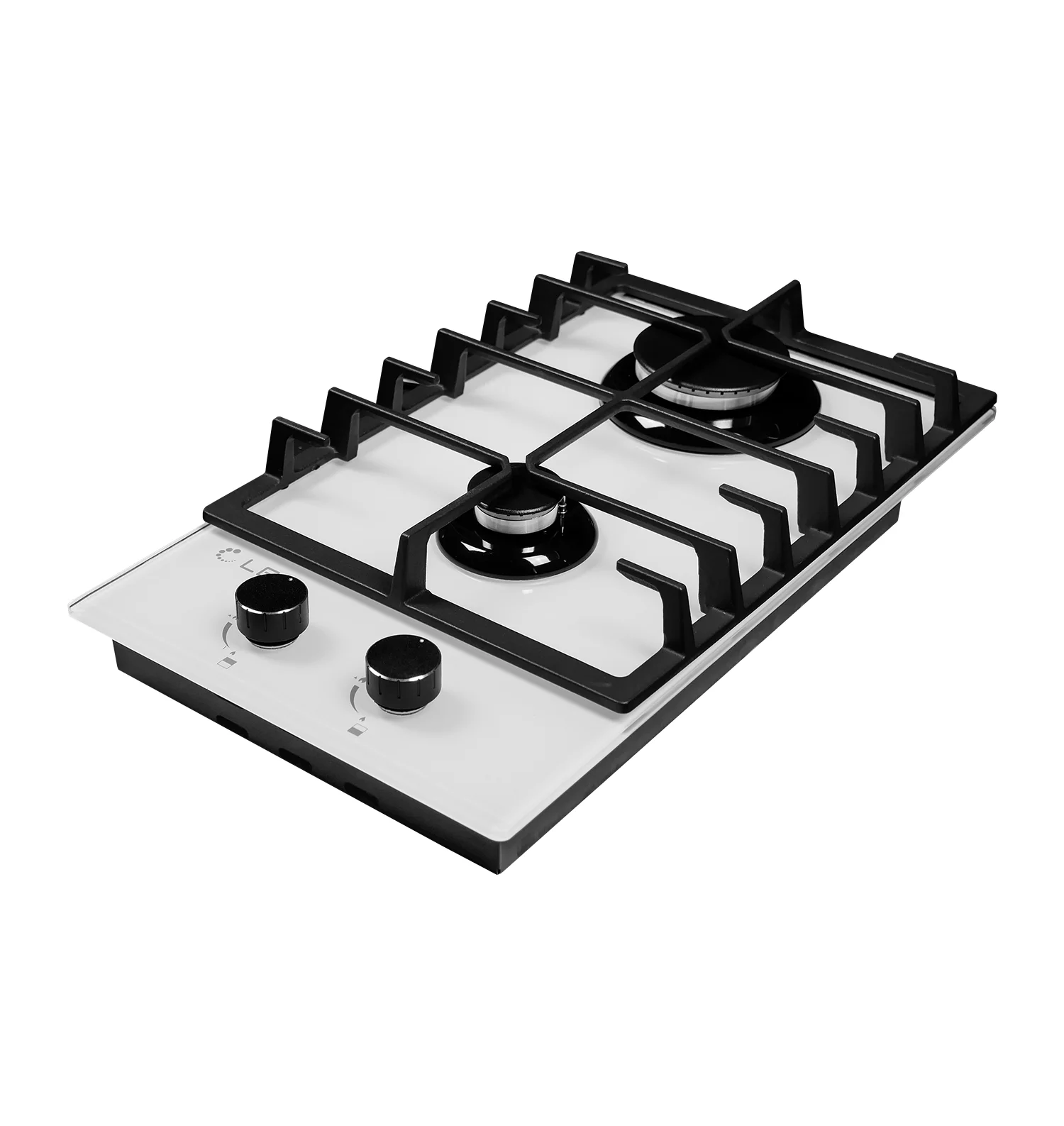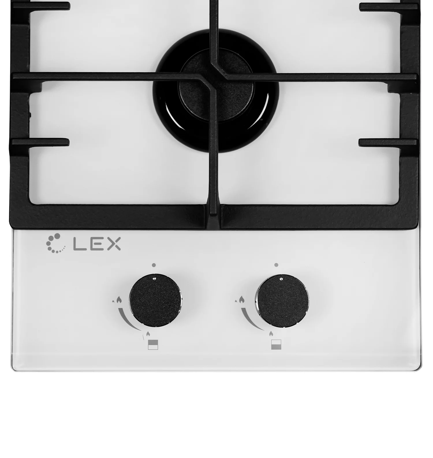 Описаниеповерхность газовая независимая, 30 см, газ на стекле, 2 конфорки, решетки чугунные, белый