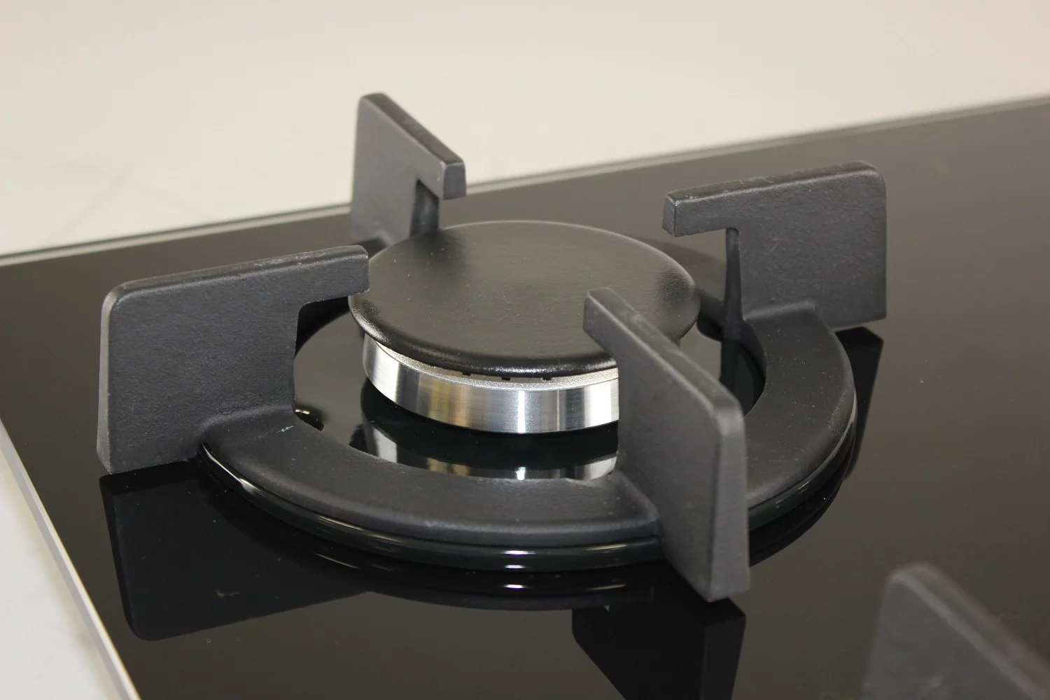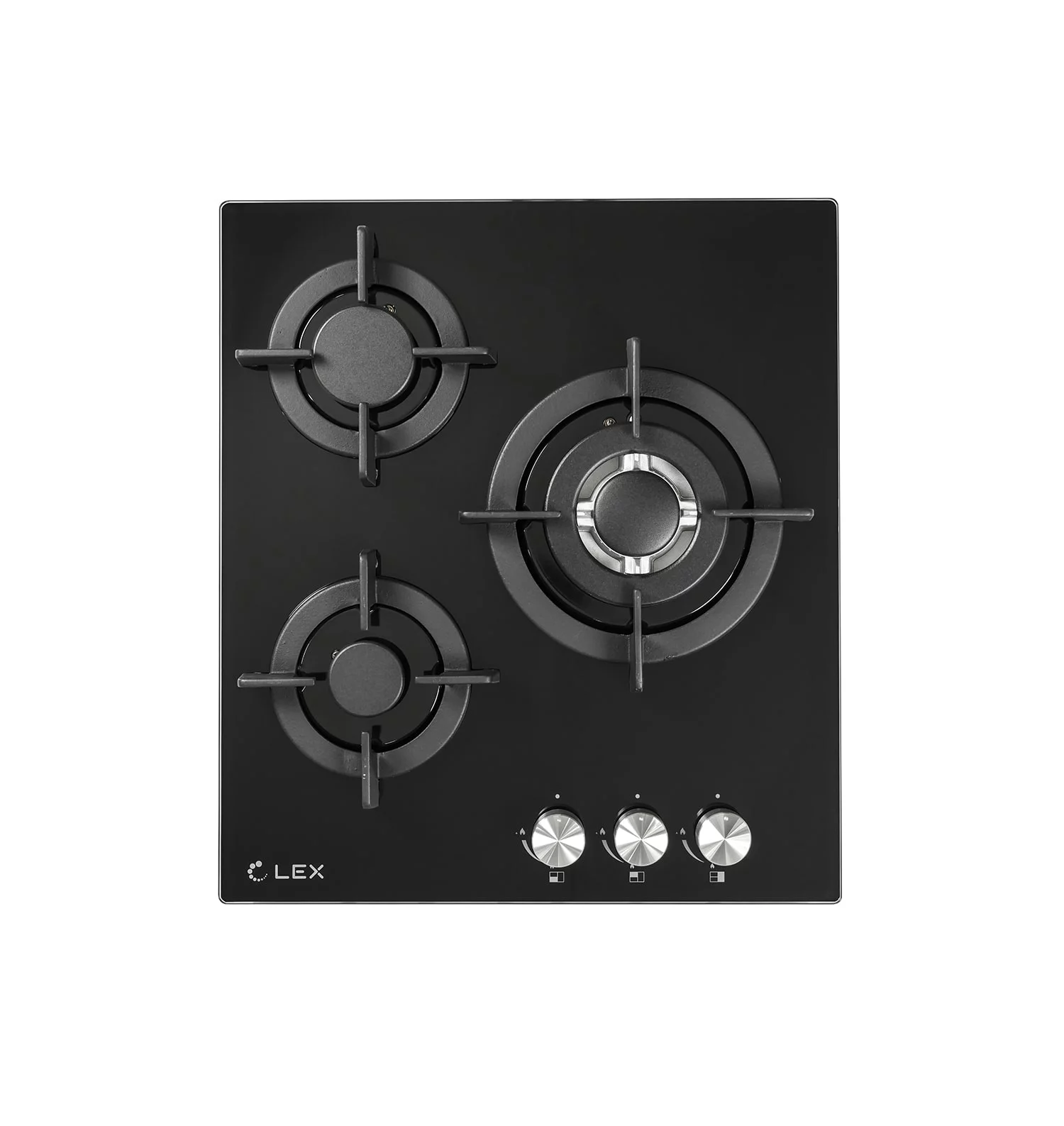 Описаниеповерхность газовая независимая, 45 см, газ на стекле, 3 конфорки, решетки чугунные, черный