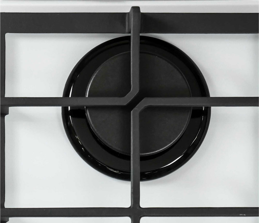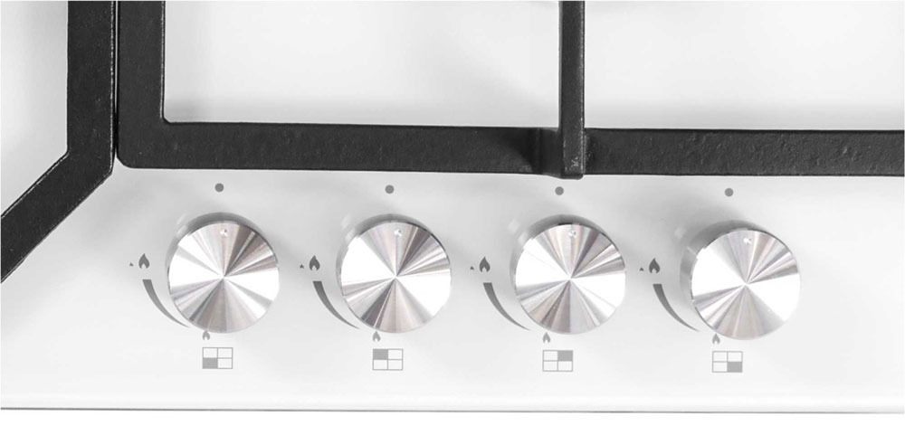 Описаниеповерхность газовая независимая, 60 см, газ на стекле, 4 конфорки, решетки чугунные, белый