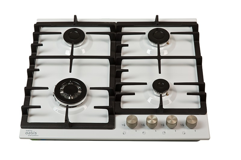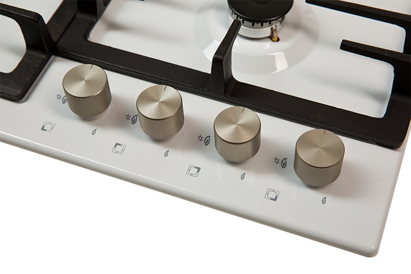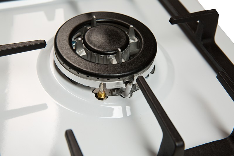 Описаниеповерхность газовая независимая, 60 см, газ на эмали, 4 конфорки, решетки чугунные, белый