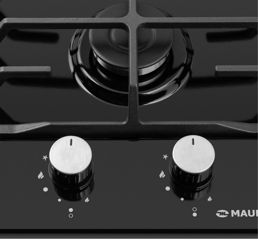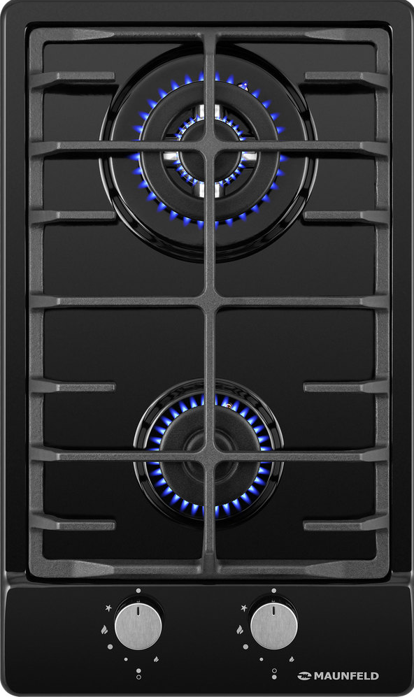 Описаниеповерхность газовая независимая, 30 см, газ на эмали, 2 конфорки, решетки чугунные, черный