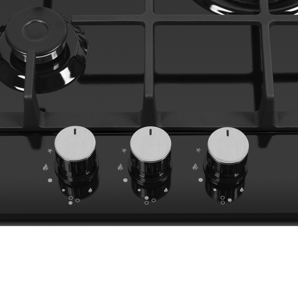 Описаниеповерхность газовая независимая, 45 см, газ на эмали, 3 конфорки, решетки чугунные, черный