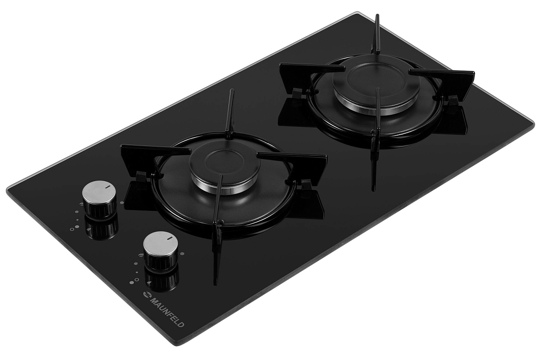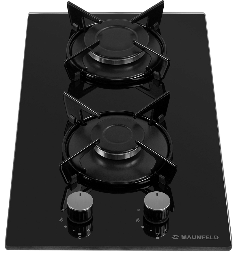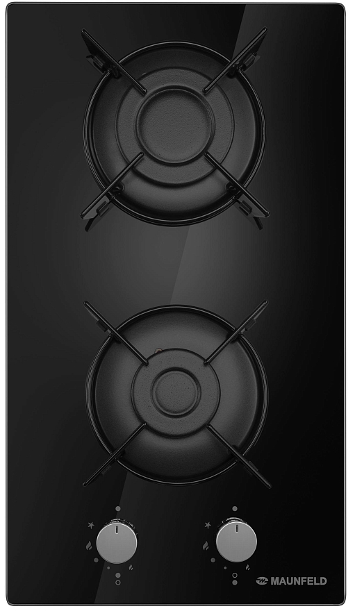 Описаниеповерхность газовая независимая, 30 см, газ на стекле, 2 конфорки, эмалированные решетки, черный