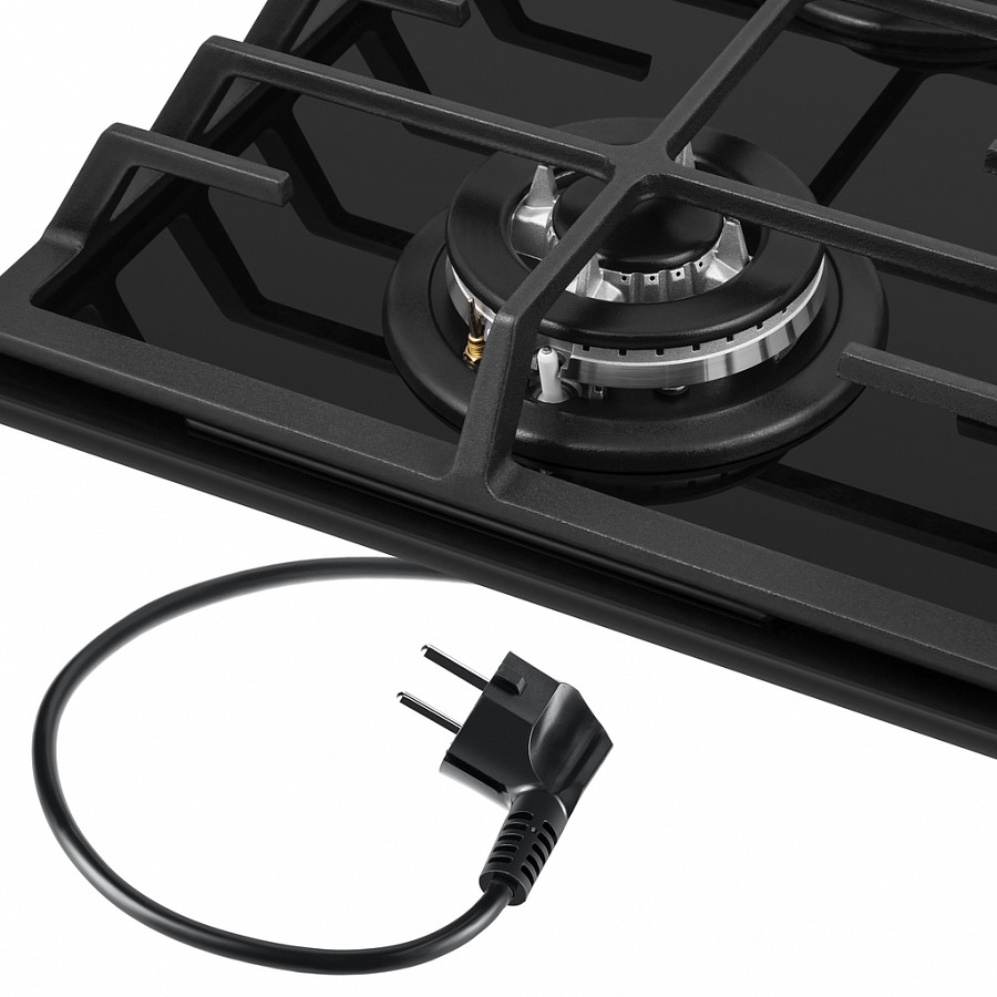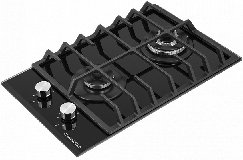 Описаниеповерхность газовая независимая, 30 см, газ на стекле, 2 конфорки, решетки чугунные, черный