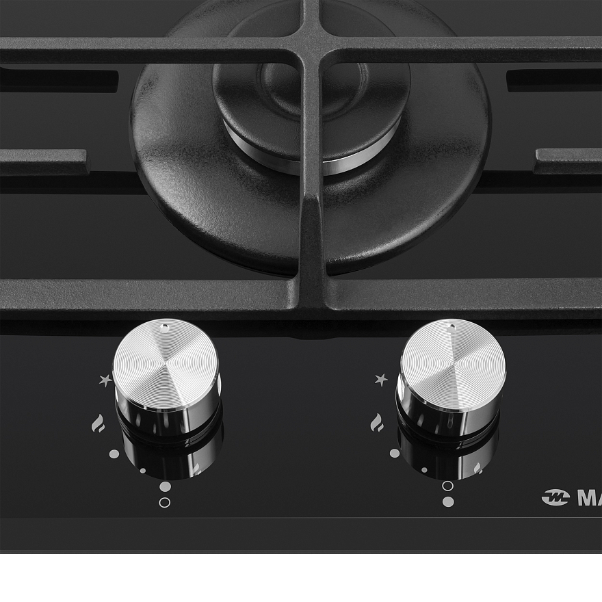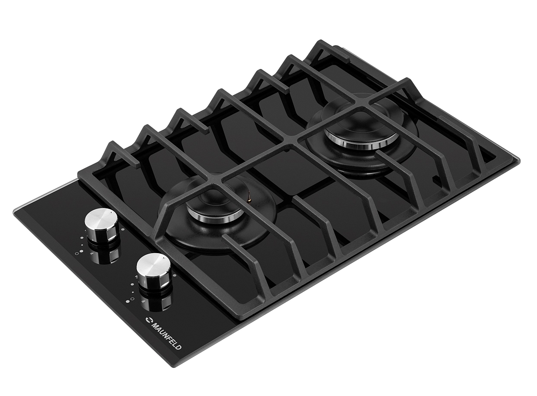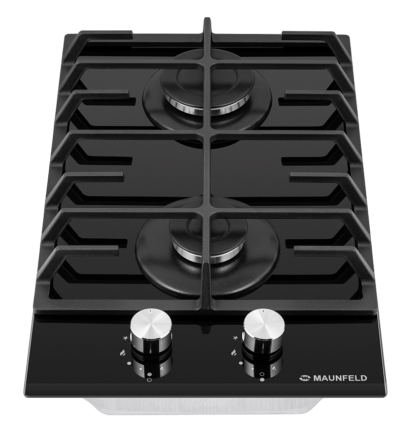 Описаниеповерхность газовая независимая, 30 см, газ на стекле, 2 конфорки, чугунные решетки, черный