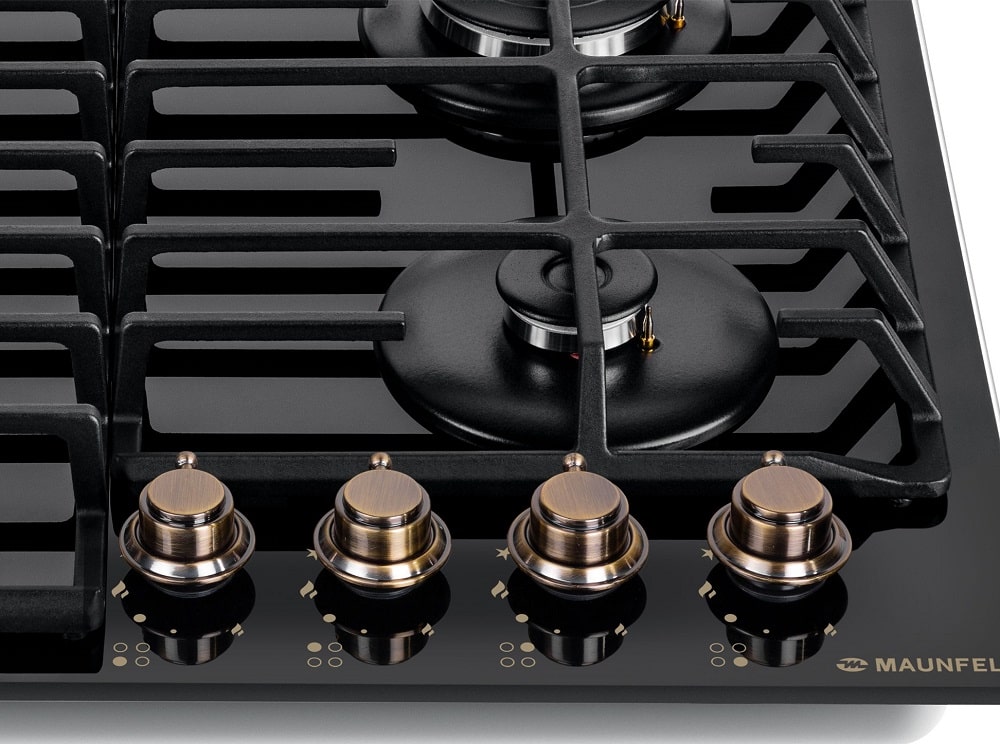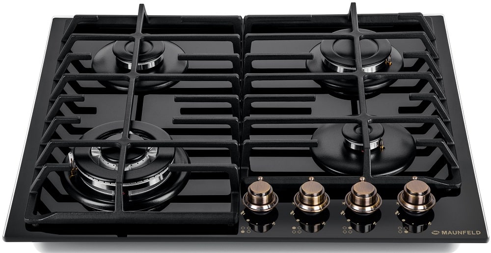 Описаниеповерхность газовая независимая, 60 см, газ на стекле, 4 конфорки, решетки чугунные, черный