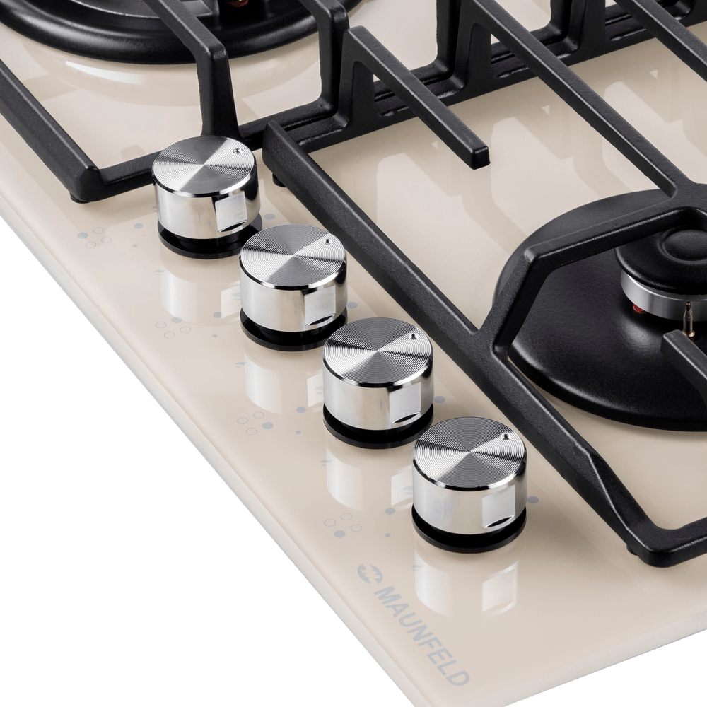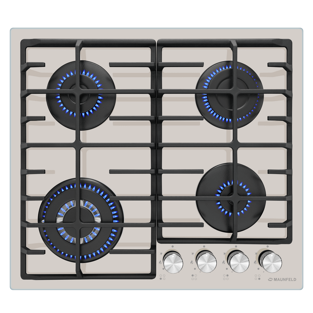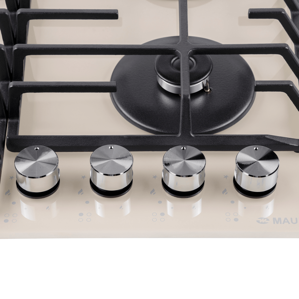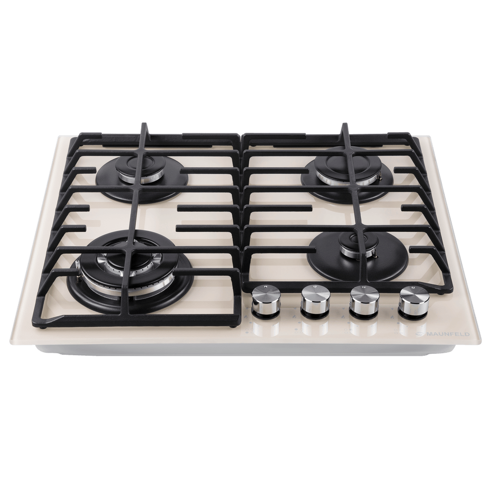 Описаниеповерхность газовая независимая, 60 см, газ на стекле, 4 конфорки, решетки чугунные, слоновая кость