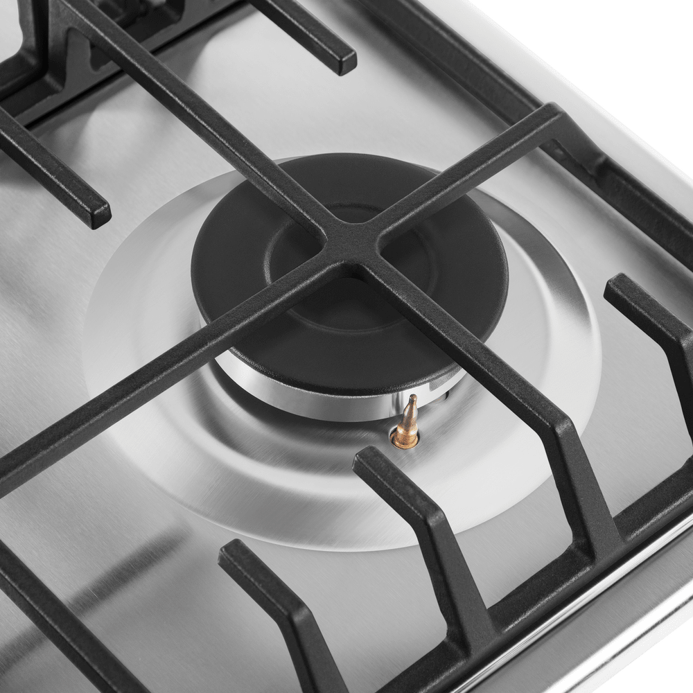 Описаниеповерхность газовая независимая, 60 см, газ на металле, 4 конфорки, решетки чугунные, нержавеющая сталь
