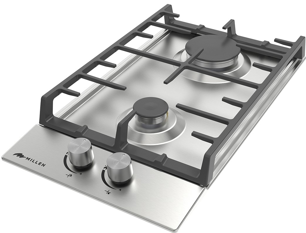 Описаниеповерхность газовая независимая, 30 см, газ на металле, 2 конфорки, решетки чугунные, нержавеющая сталь