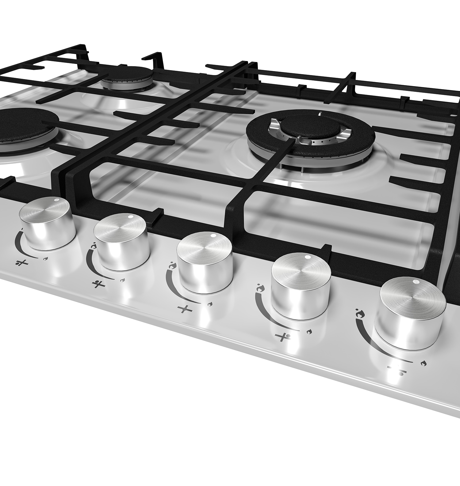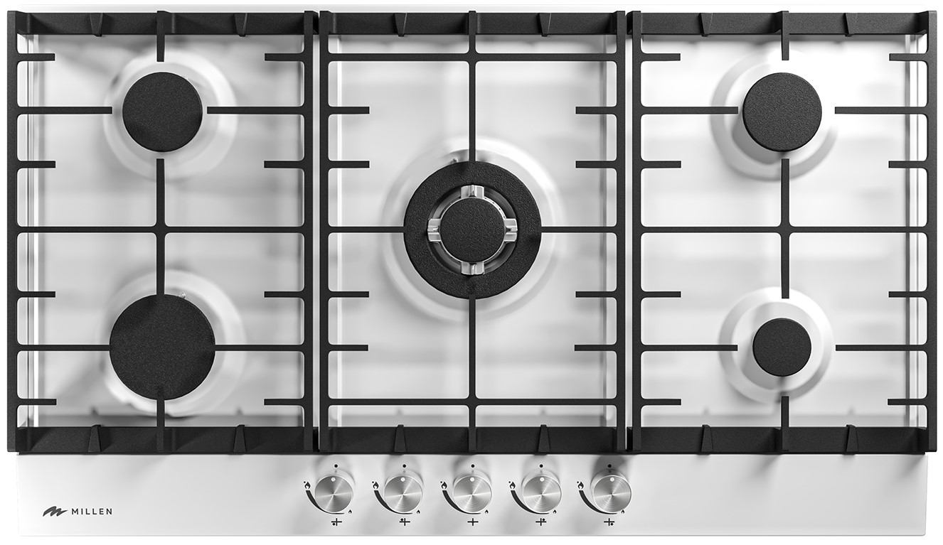 Описаниеповерхность газовая независимая, 90 см, газ на эмали, 5 конфорок, решетки чугунные, белый