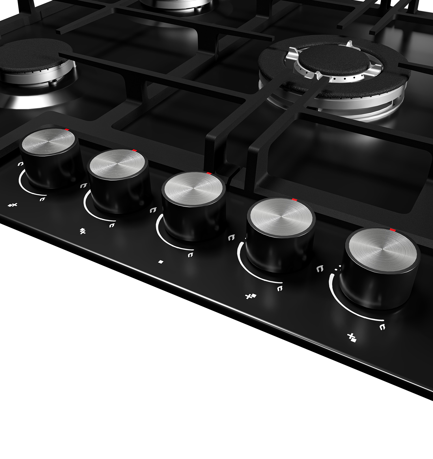 Описаниеповерхность газовая независимая, 75 см, газ на эмале, 5 конфорок, решетки чугунные, черный