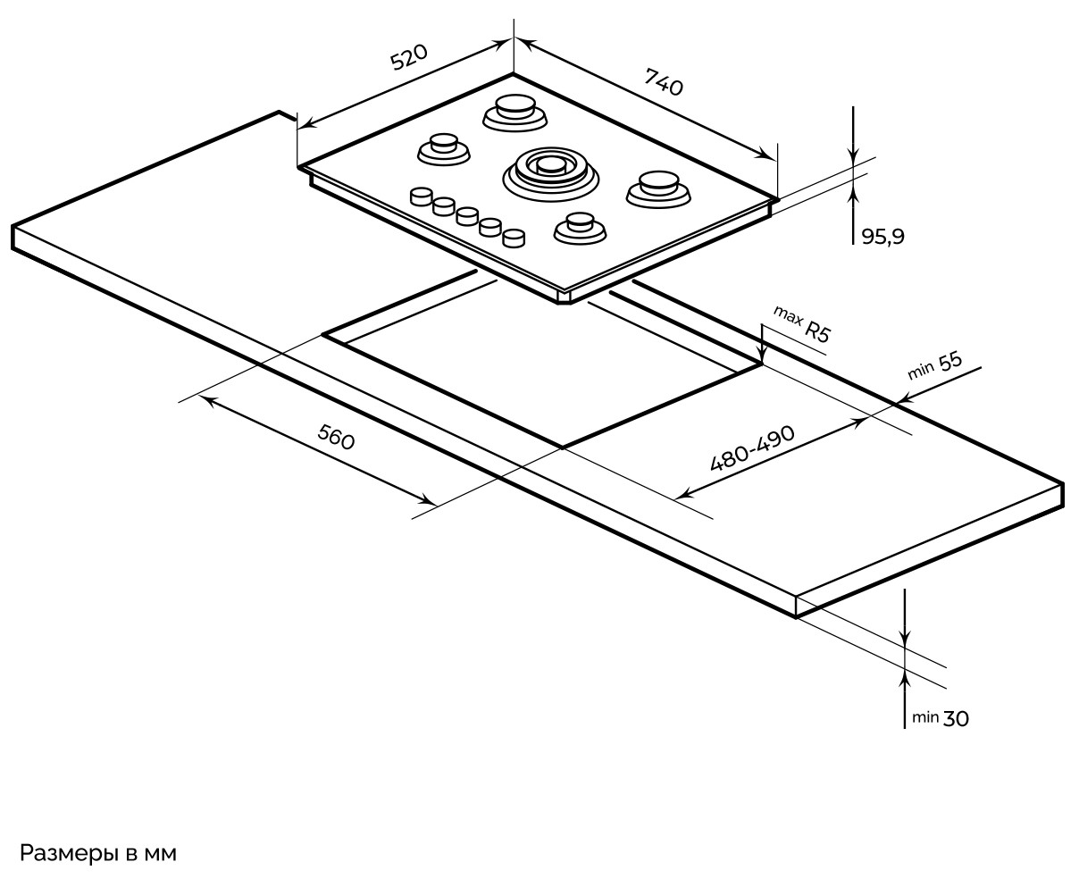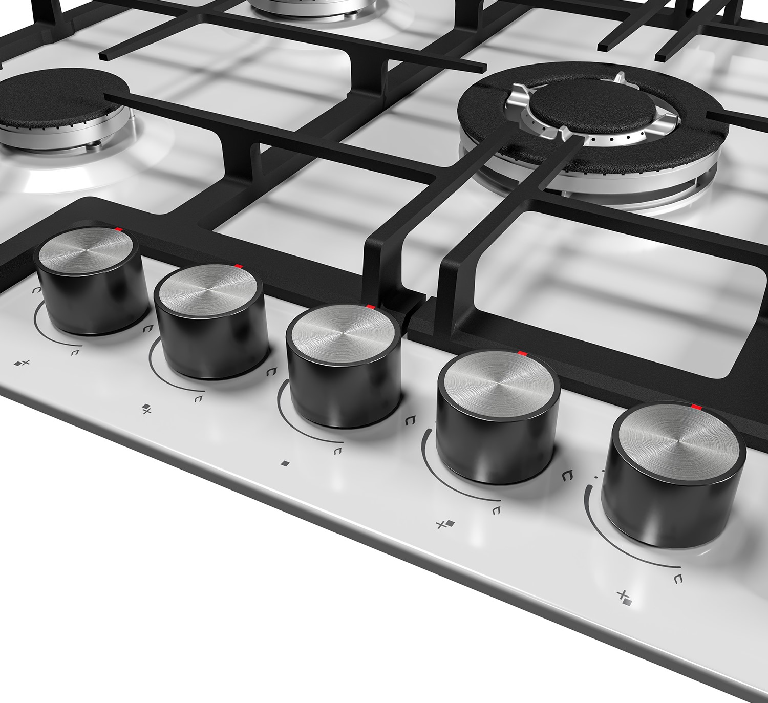 Описаниеповерхность газовая независимая, 75 см, газ на эмале, 5 конфорок, решетки чугунные, белый