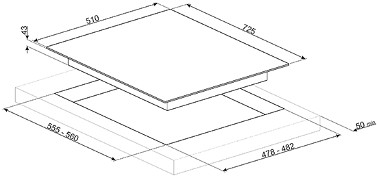 Описаниеповерхность газовая независимая, 72,5 см, газ на металле, 5 конфорок, решетки чугунные, нержавеющая сталь