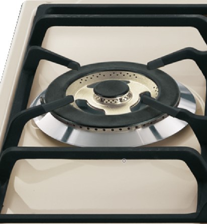 Описаниеповерхность газовая независимая, 60 см, газ на эмали, 4 конфорки, решетки чугунные, кремовый, фурнитура латунь