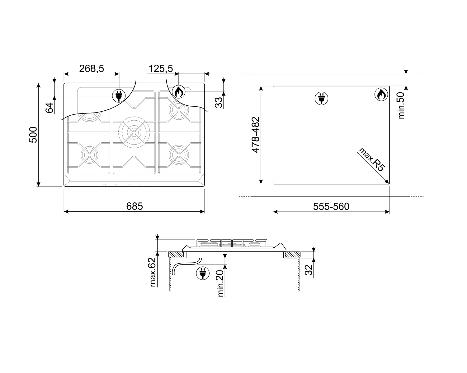 Smeg SR775PO Газовая поверхность
