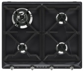 Описаниеповерхность газовая независимая, 60 см, газ на эмали, 4 конфорки, решетки чугунные, черный