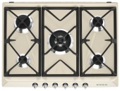 Описаниеповерхность газовая независимая, 70 см, газ на эмали, 5 конфорок, решетки чугунные, кремовый