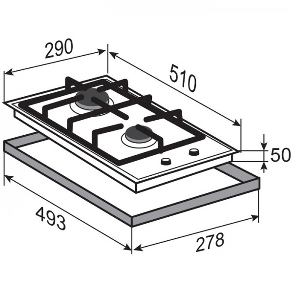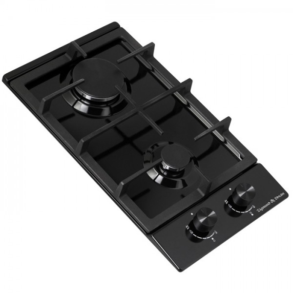 Описаниеповерхность газовая независимая, 30 см, газ на эмали, 2 конфорки, решетка чугунная, черный