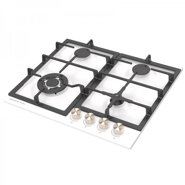 Описаниеповерхность газовая независимая, 60 см, газ на эмали, 4 конфорки, решетки чугунные, белый