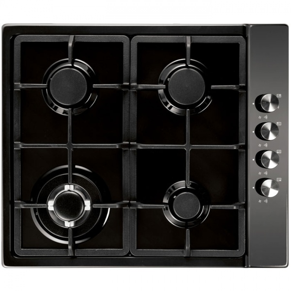 Описаниеповерхность газовая независимая, 60 см, газ на эмали, 4 конфорки, решетки чугунные, черный