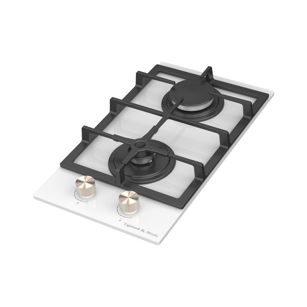 Описаниеповерхность газовая независимая, 30 см, газ на стекле, 2 конфорки, решетка чугунная, белый