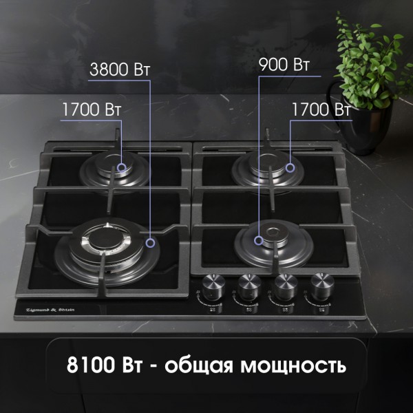 Размер (Ширина) 60 см Цвет черный Ширина прибора 60 см Переключатели поворотные Управление механическое Таймер нет Фурнитура черная Гарантийный срок (месяцы) 60 Страна производитель Турция Ссылка на сайт производителя https://www.zigmundshtain.ru/vstraivaemaya-tekhnika/zigmund__amp__shtain/5336/ Всего конфорок 4 Рабочая поверхность закаленное стекло Количество газовых конфорок 4 Газ-контроль конфорок есть Решетки чугунные Тип поверхности газовая Электроподжиг есть Встроенная вытяжка нет Конфорка WOK 1 x 3500 Вт Размер в упаковке (Высота) 16 см Размер в упаковке (Ширина) 66 см Размер в упаковке (Глубина) 60 см - Отзывы