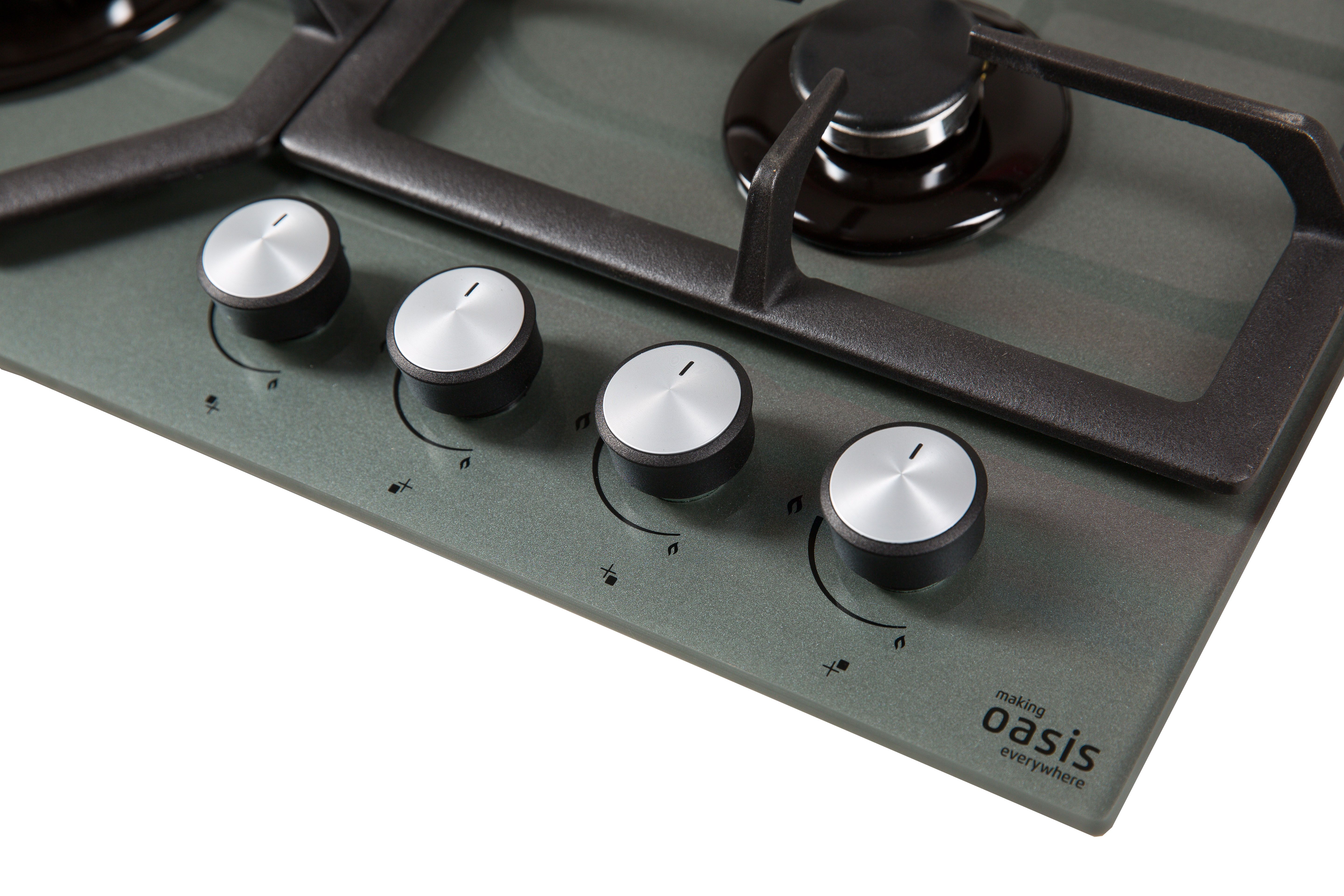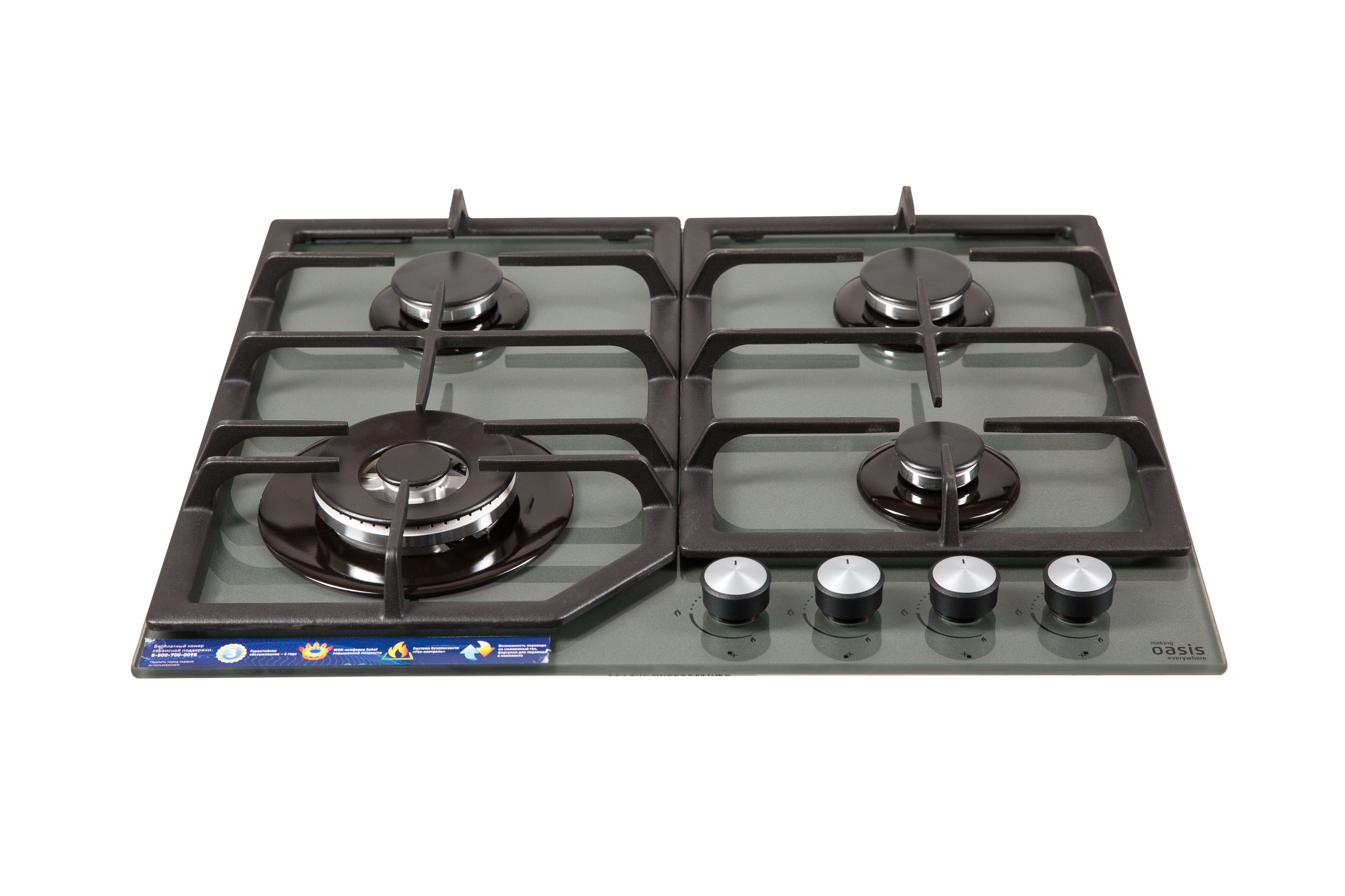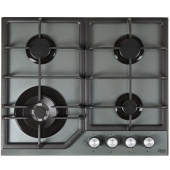 Описаниеповерхность газовая независимая, 60 см, газ на стекле, 4 конфорки, решетки чугунные, серый