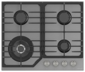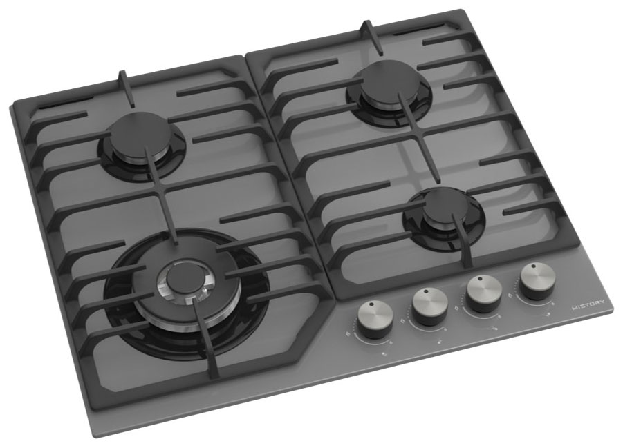 поверхность газовая независимая, 60 см, газ на стекле, 4 конфорки, решетки чугунные, графитовый
