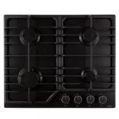 Описаниеповерхность газовая независимая, 60 см, газ на эмали, 4 конфорки, решетки чугунные, черный матовый