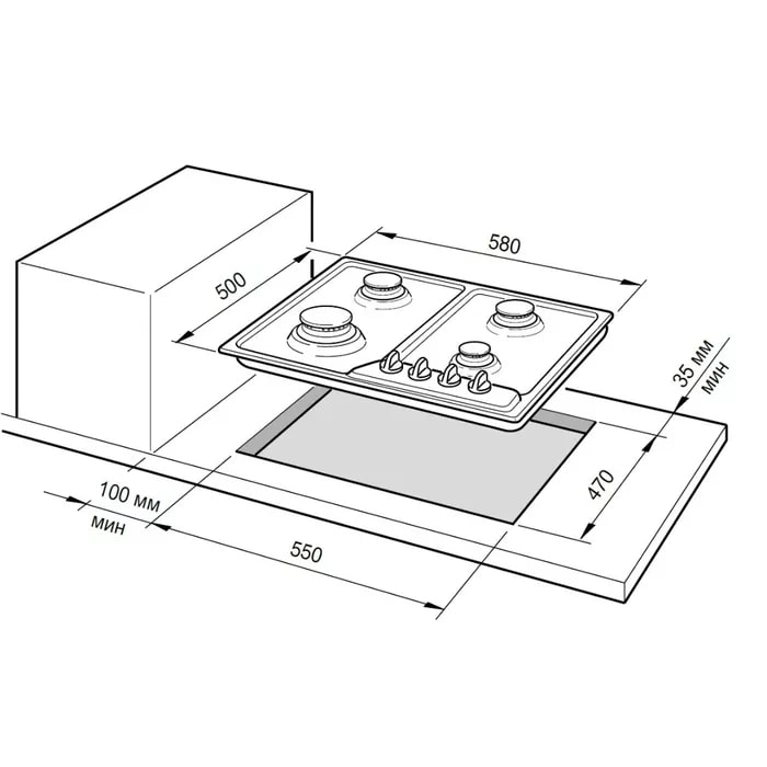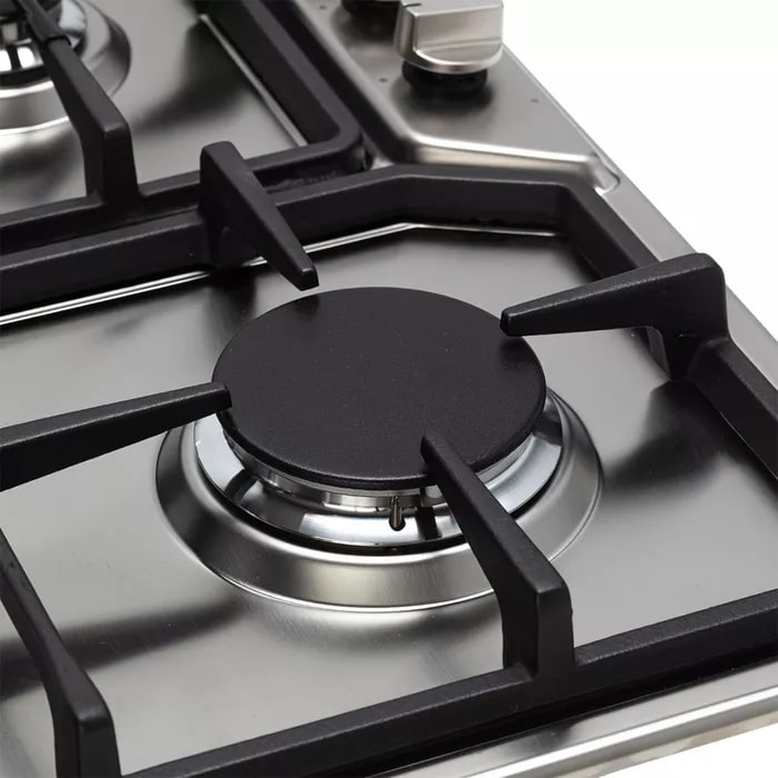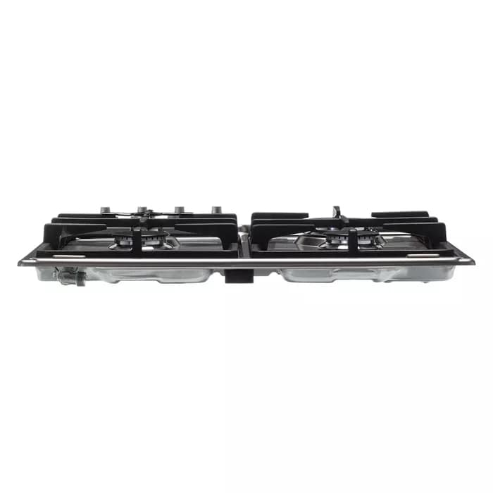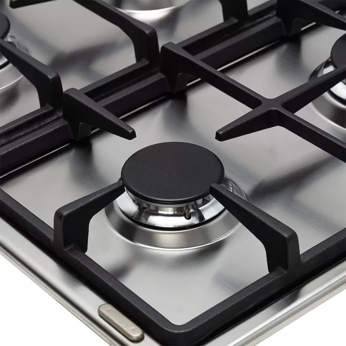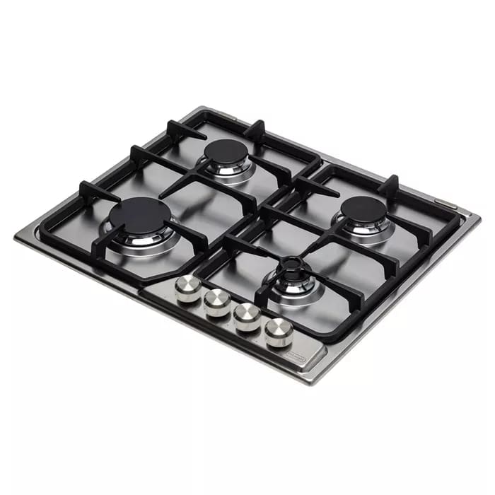 Описаниеповерхность газовая независимая, 60 см, газ на металле, 4 конфорки, решетки чугунные, нержавеющая сталь
