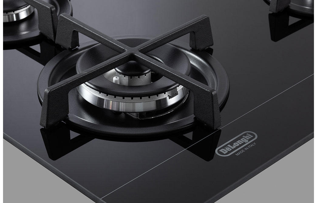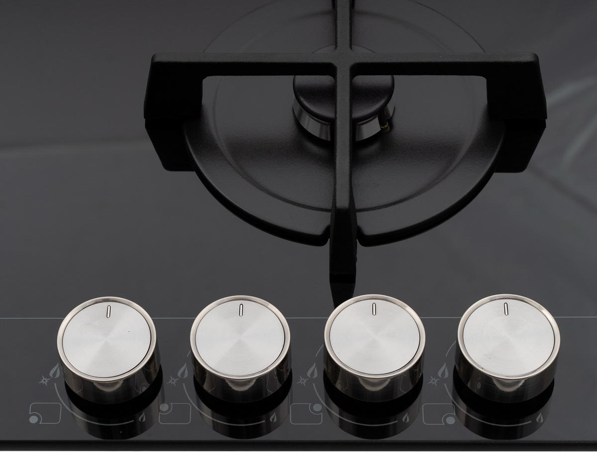 Описаниеповерхность газовая независимая, 60 см, газ на стекле, 4 конфорки, решетки чугунные, черный