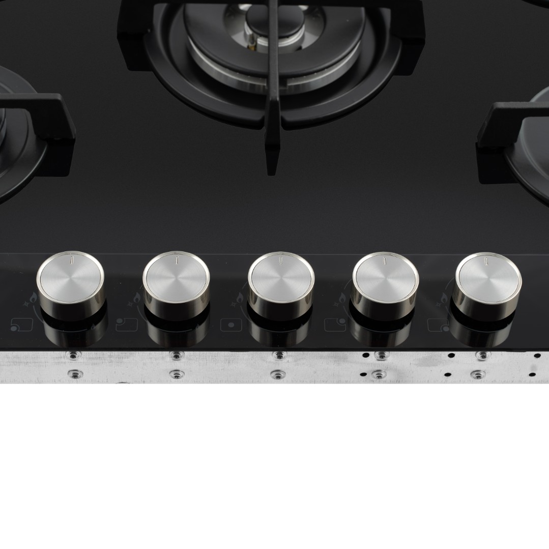 Описаниеповерхность газовая независимая, 75 см, газ на стекле, 5 конфорок, решетки чугунные, черный