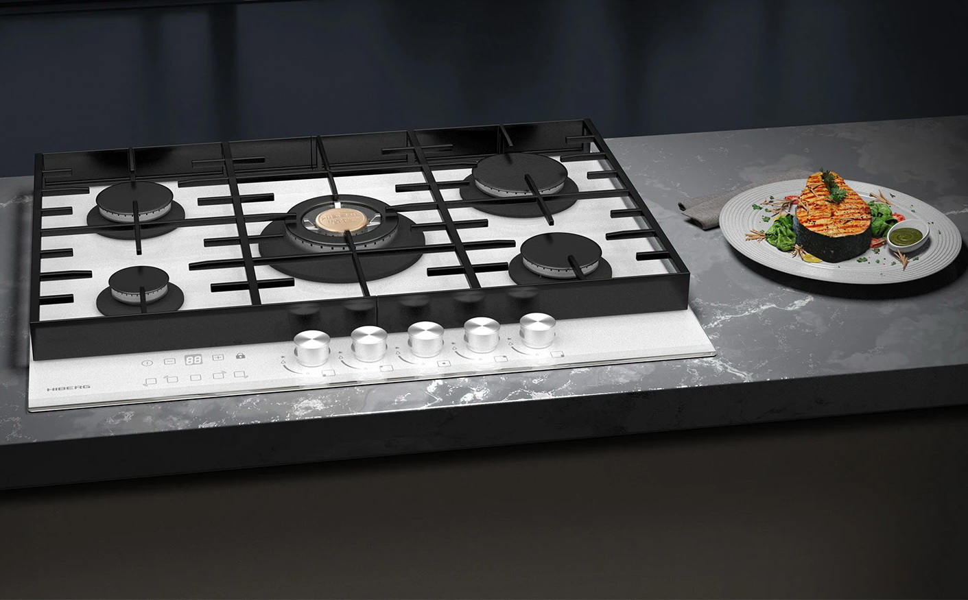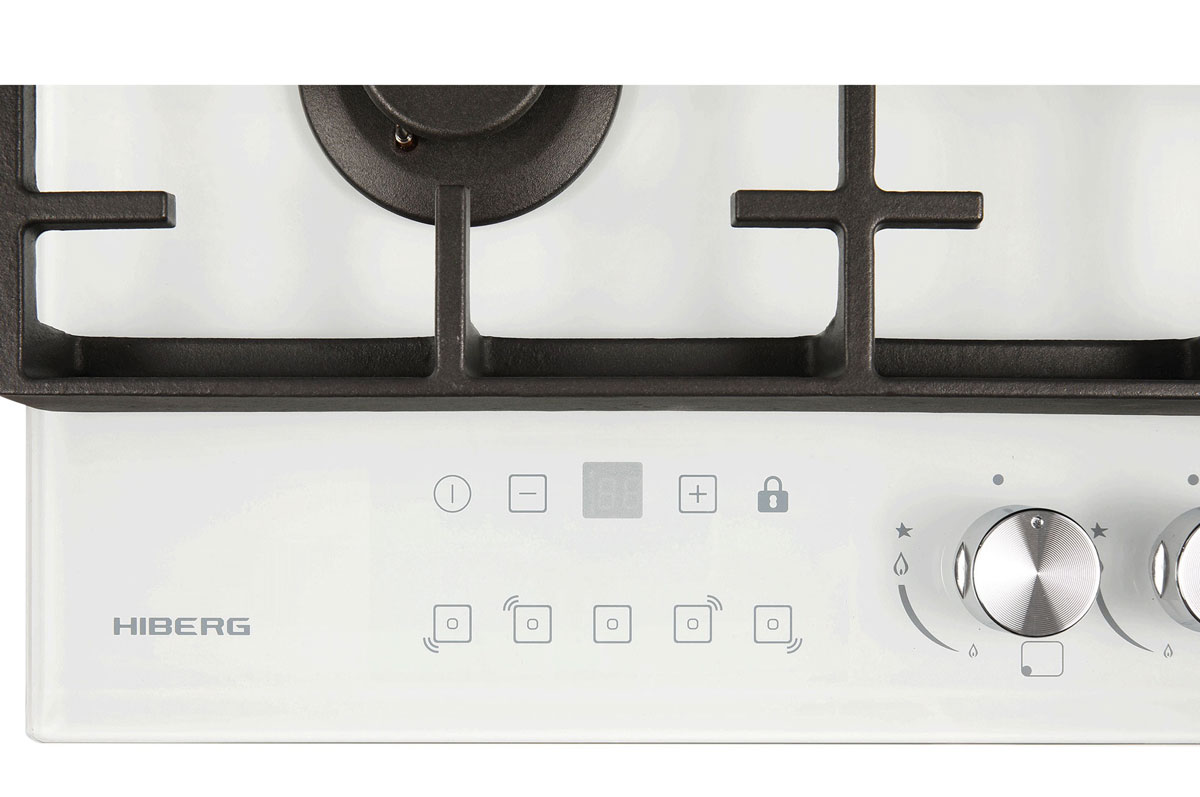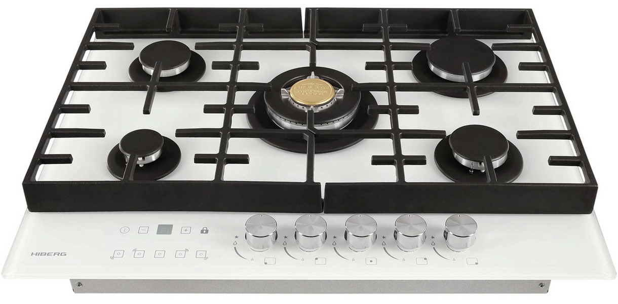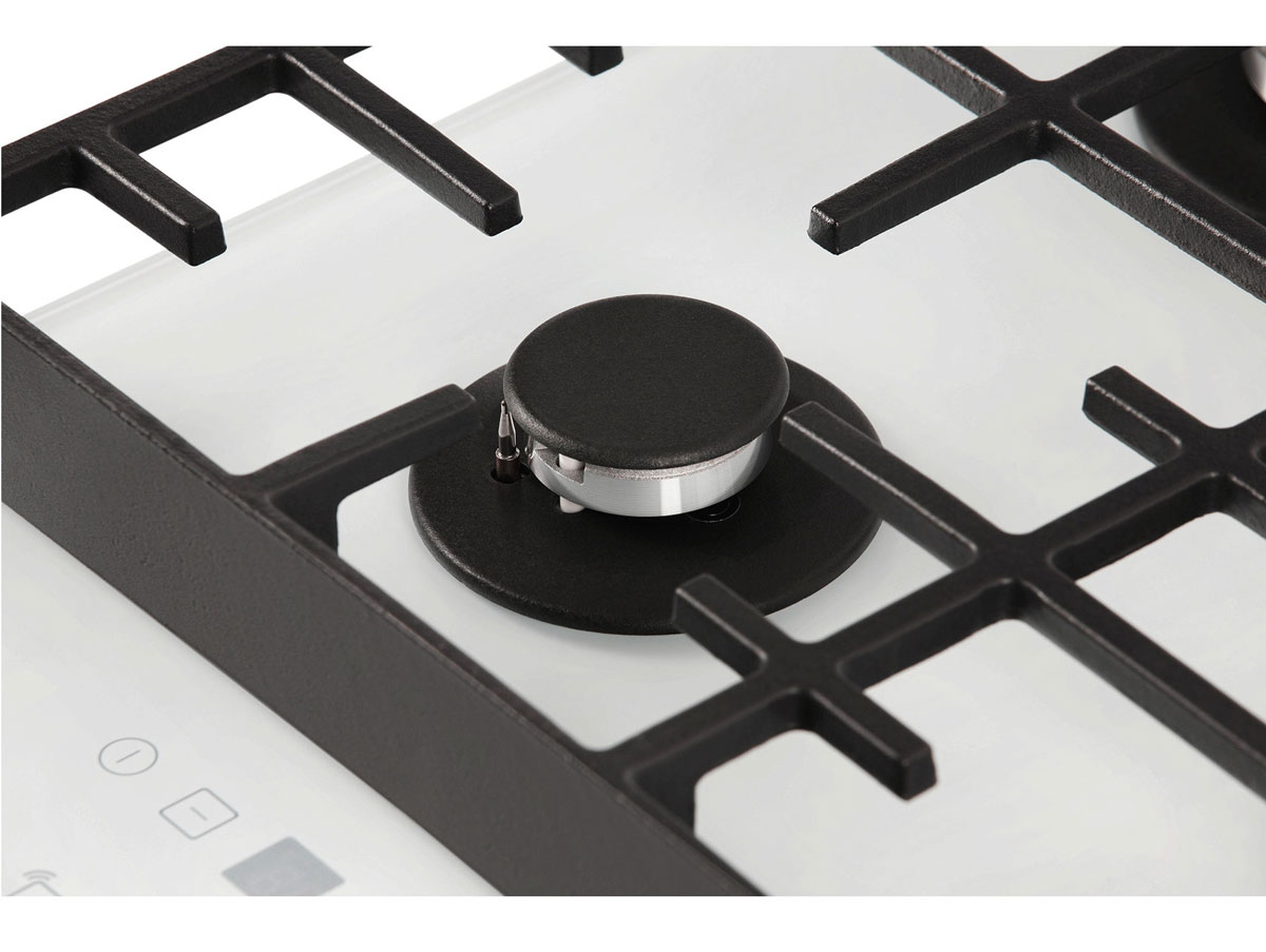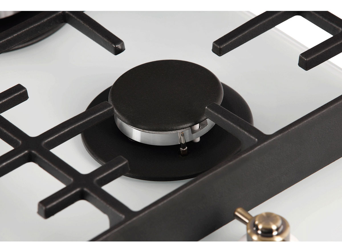 Описаниеповерхность газовая независимая, 70 см, газ на стекле, 5 конфорок, решетки чугунные, белый (2 комплекта ручек)