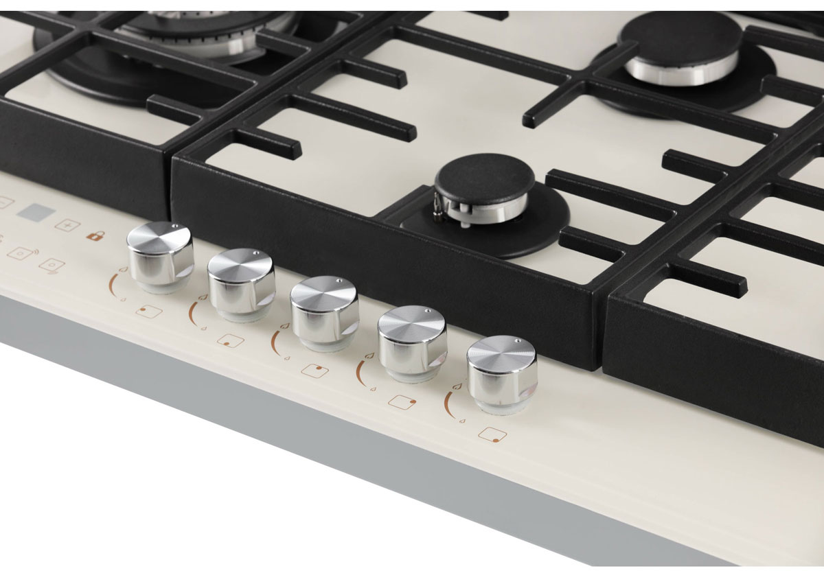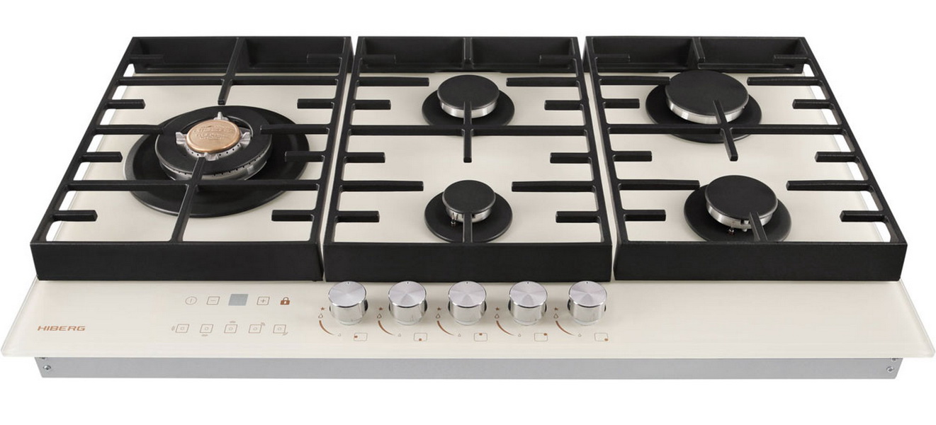 Описаниеповерхность газовая независимая, 87,4 см, газ на стекле, 5 конфорок, решетки чугунные, бежевое стекло (2 комплекта ручек)