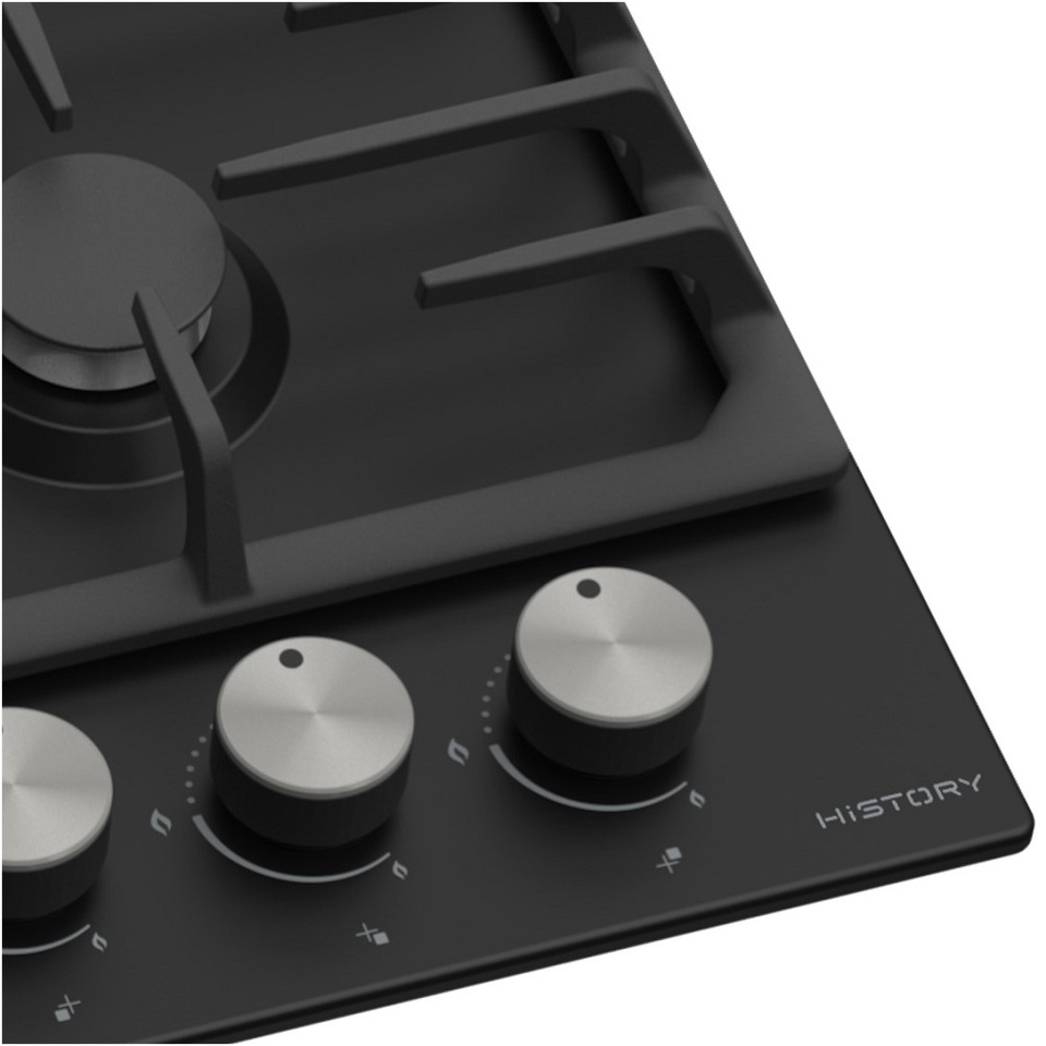 Описаниеповерхность газовая независимая, 60 см, газ на эмали, 4 конфорки, решетки чугунные, черный