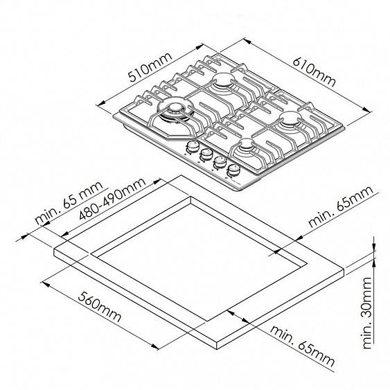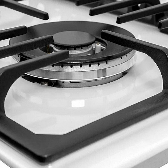 Описаниеповерхность газовая независимая, 60 см, газ на эмали, 4 конфорки, решетки чугунные, белый