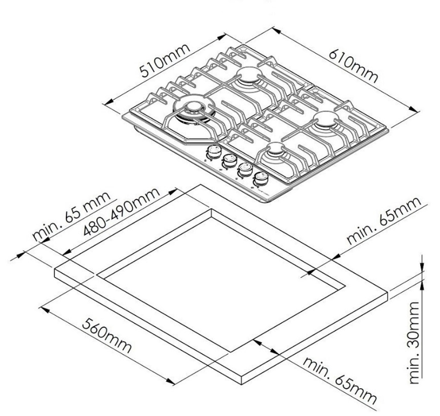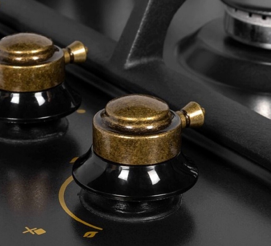 Описаниеповерхность газовая независимая, 60 см, газ на эмали, 4 конфорки, решетки чугунные, черная ретро