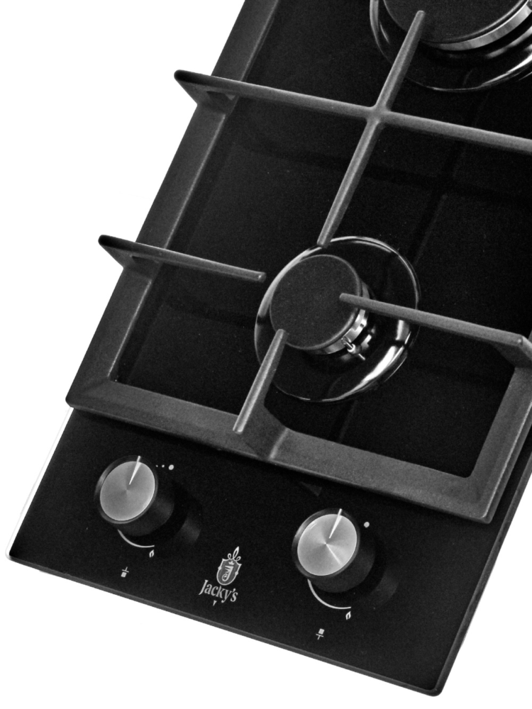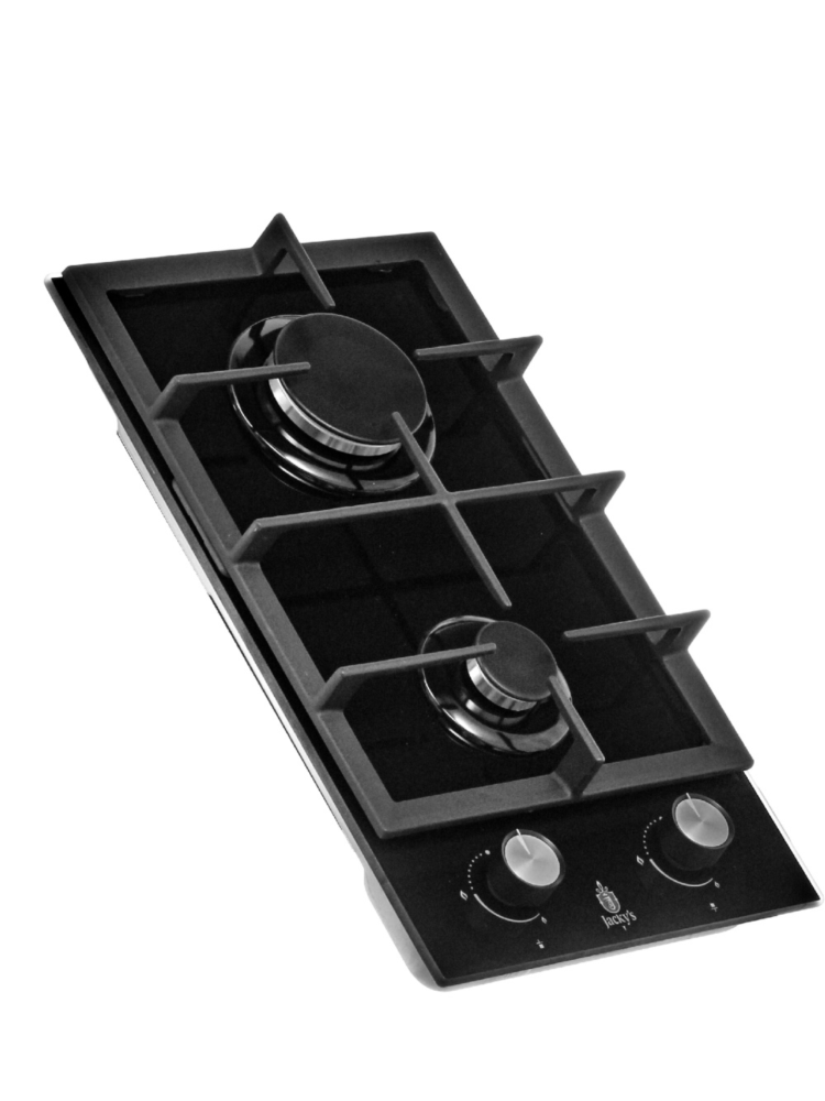 Описаниеповерхность газовая независимая, 30 см, газ на стекле, 2 конфорки, чугунные решетки, черный