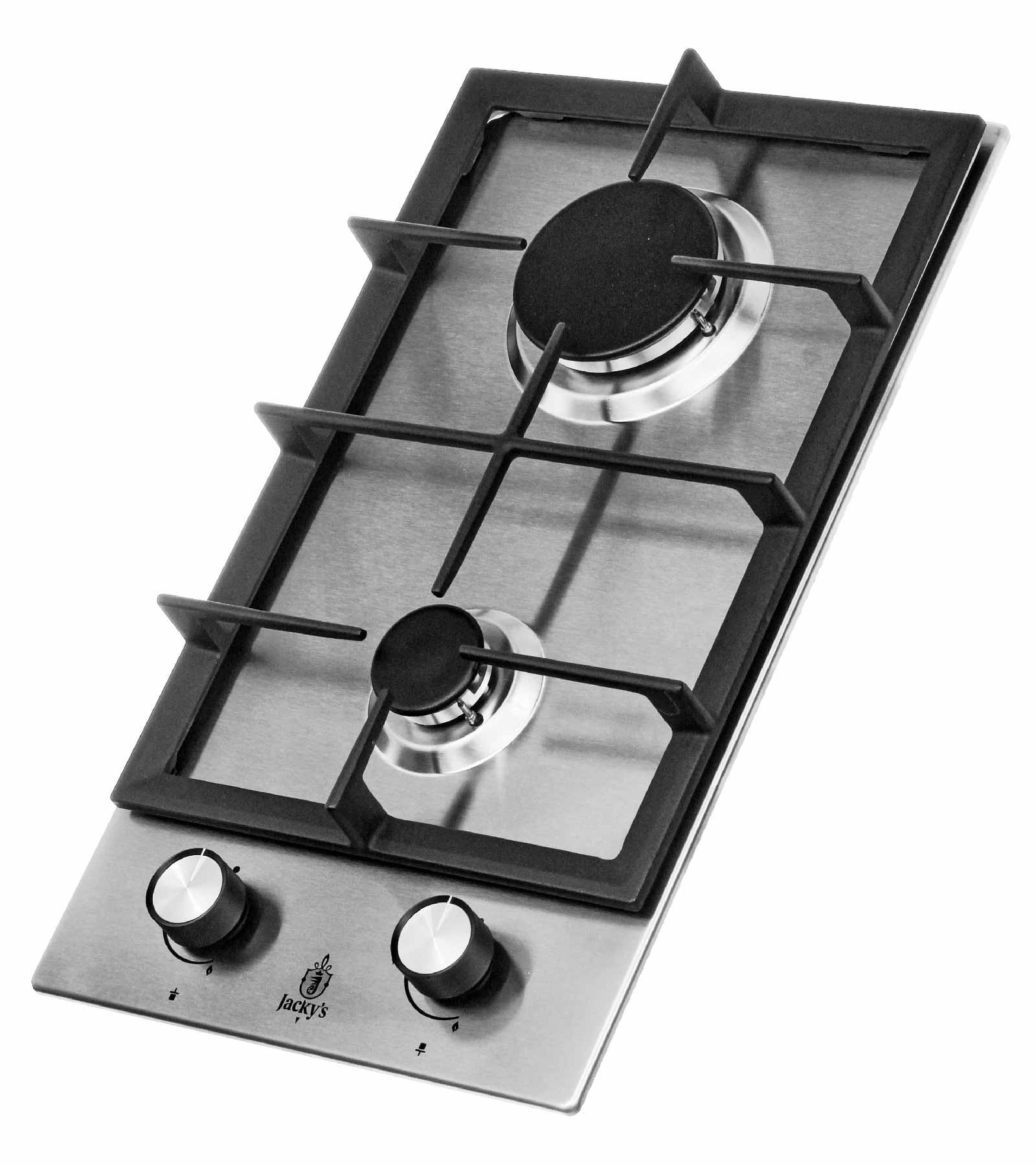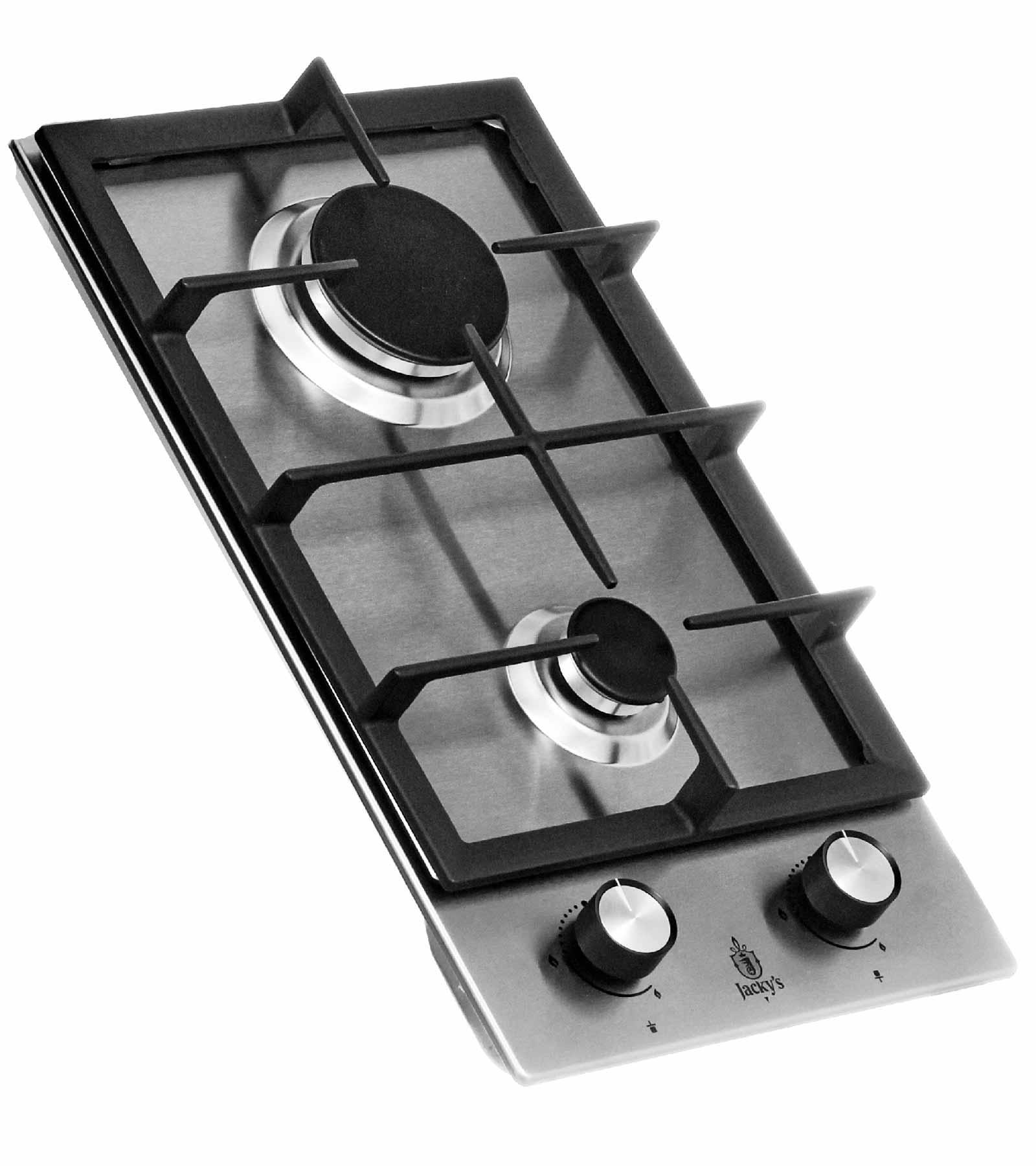 Описаниеповерхность газовая независимая, 30 см, газ на металле, 2 конфорки, чугунные решетки, нержавеющая сталь