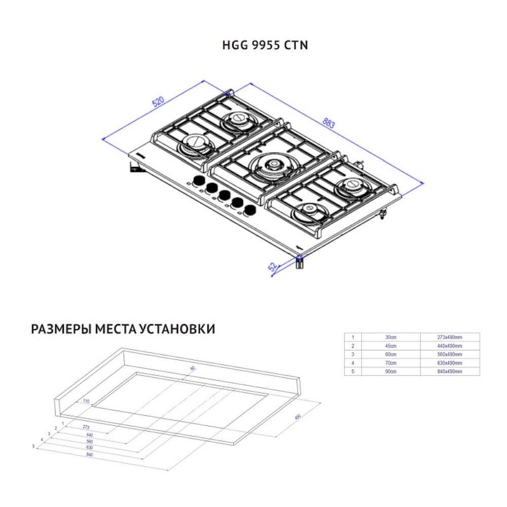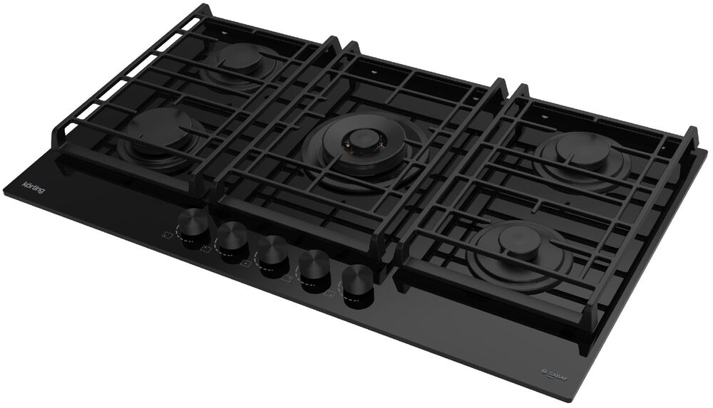 Описаниеповерхность газовая независимая, 90 см, газ на стекле, 5 комфорок, решетки чугунные, черное стекло