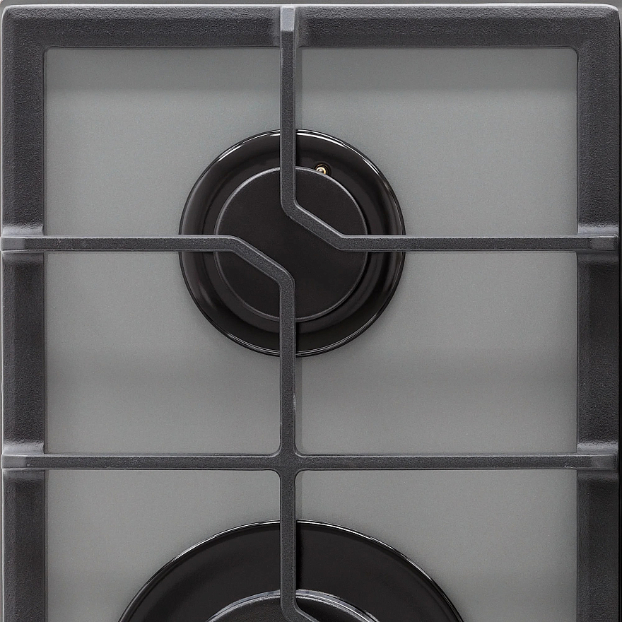 Описаниеповерхность газовая независимая, 60 см, газ на стекле, 4 конфорки, решетки чугунные, серый