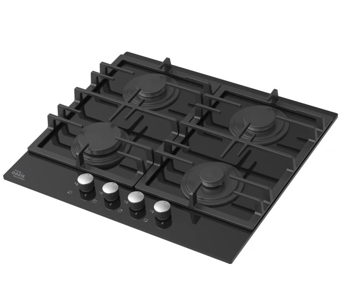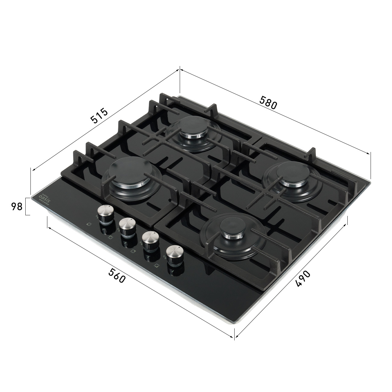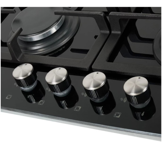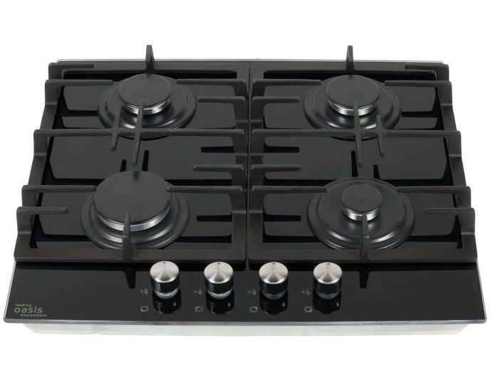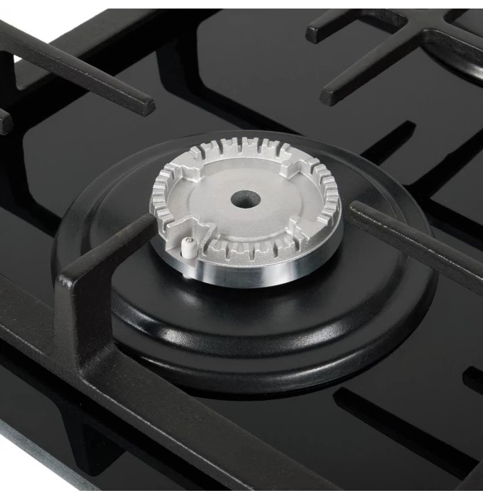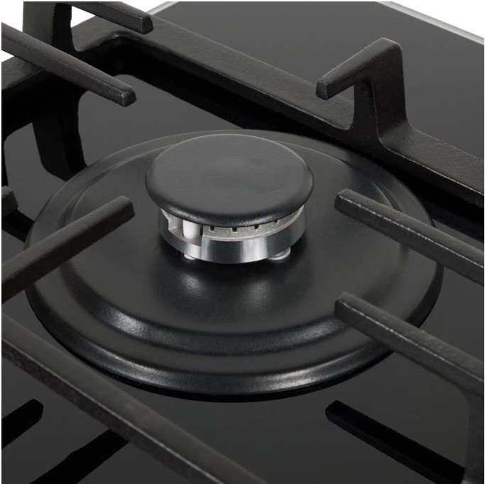 Описаниеповерхность газовая независимая, 60 см, газ на стекле, 4 конфорки, решетки чугунные, черный